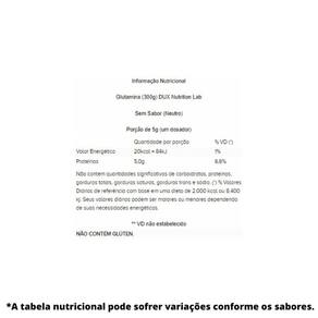 Sugestão de uso da Glutamina Dux Nutrition:Consumir uma porção de 5g (uma colher de chá) dissolvida em 200 ml de água, ou em sua bebida preferida, duas vezes ao dia idealmente.