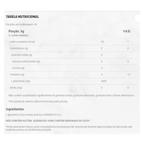 L-glutamina é um aminoácido condicionalmente essencial e estima-se que aproximadamente 60% de todos os aminoácidos livres no corpo estão na forma de l-glutamina, sendo o músculo o órgão de maior armazenamento. Para que serve: aumento das reservas endógenas de l-glutamina. Como utilizar: recomenda-se diluir 5g 1 colher medida do produto em água filtrada e completar até o volume final de 100ml. Ingerir de 1 a 2 vezes ao dia. Quando não deve ser utilizado: pacientes com restrição proteica por patologias hepática e renal ou por qualquer indicação do médico. Marca: Não Informado