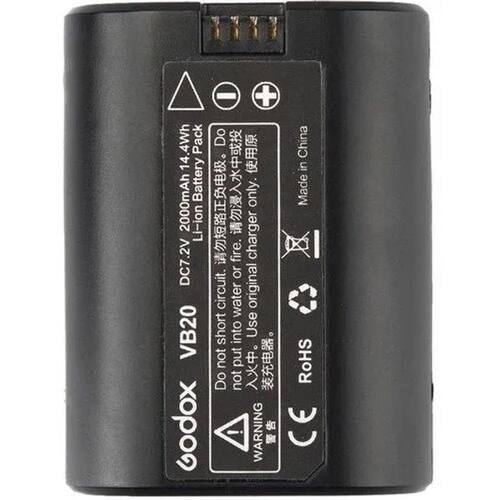 Godox Bateria VB20 Original Lithium-Ion para Flash V350 (7.2V, 2000mAh) Principais características Substituição ou peça sobresselente Fornece mais de 500 Full-Power flashes Potência: 14,4 Wh Esta bateria do lítio-íon VB20 de Godox é uma pilha da recolocação ou de reposição para o flash V350S. É avaliado fornecer 2000mAh em uma tensão de 7.2 V, tendo por resultado um poder de 14.4 wh. Quando totalmente carregada, a bateria pode fornecer mais de 500 Full-Power Pops e permite a reciclagem de tempos de 1,7 segundos ou inferior.