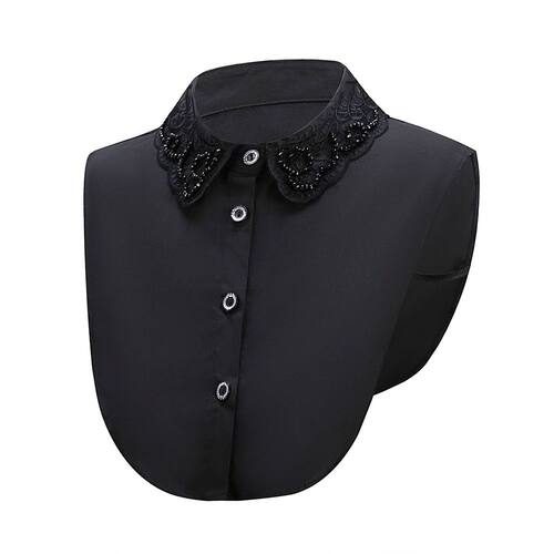 Gola falsa removível preta com design bordado de miçangas — Material de algodão, perfeito para adicionar elegância a blusas, vestidos e suéteres — 41 x 34 x 30 cm Material: algodão Tamanho: 41 × 34 × 30 cm Peso: 100 g