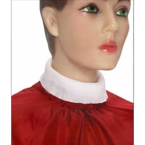 Segure a gola higiênica nas pontas e estique-a levemente, coloque ao redor do pescoço do cliente.