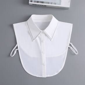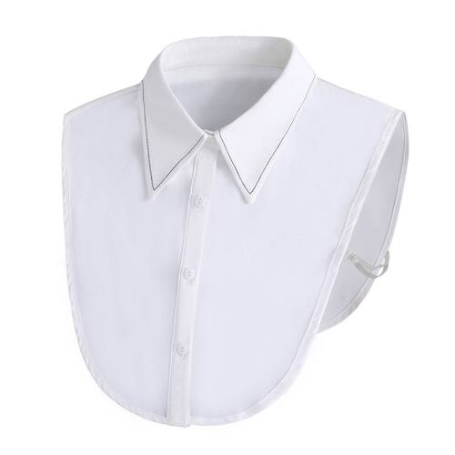 Elegante gola branca removível com debrum preto contrastante, gola de blusa falsa clássica feminina para blusas, vestidos e suéteres — gola de meia camisa sintética ajustável e abotoada para todas as ocasiões Material: algodão Tamanho: 29 × 34 × 40 cm Peso: 100 g