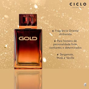 Gold é um perfume Ciclo Cosméticos masculino oriental ambarado. Traz uma fragrância marcante inspirada em homens de personalidade forte, confiantes e determinados.