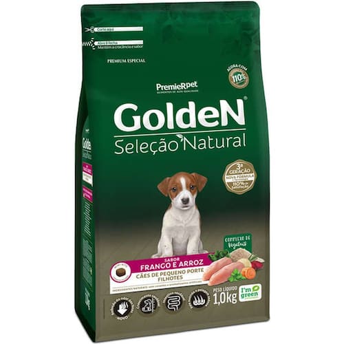 Golden Seleçao Nat. Caes Filh. M.B 1 Kg- Saúde oral: auxilia a redução da formação do tártaro; - Crescimento saudável: feito com DHA e proteína de qualidade elevada; - Intestino saudável: combinação de nutrientes de alta digestibilidade e fibras naturais; - Redução do odor das fezes: seleção de ingredientes especiais que auxiliam na redução do odor das fezes.A Ração Seca PremieR Pet Golden Seleção Natural para Cães Filhotes Mini Bits contém complexo de 6 vegetais, como fonte de fibras e sais minerais, baixo teor de sódio para ressaltar o sabor natural dos ingredientes, sem corantes e aromatizantes artificiais e sem ingredientes transgênicos, a linha Golden Seleção Natural é a melhor escolha para que seu pet tenha uma alimentação de acordo com seu estilo de vida.