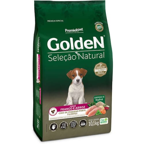 Golden Seleçao Nat. Caes Filhote Raça Pequena 10,1 Kg- Saúde oral: auxilia a redução da formação do tártaro; - Crescimento saudável: feito com DHA e proteína de qualidade elevada; - Intestino saudável: combinação de nutrientes de alta digestibilidade e fibras naturais; - Redução do odor das fezes: seleção de ingredientes especiais que auxiliam na redução do odor das fezes.