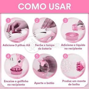 Golfinho Bolhudo Lança Bolhas Sabão Criança Infantil Rosa 9