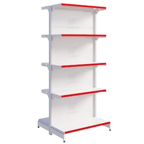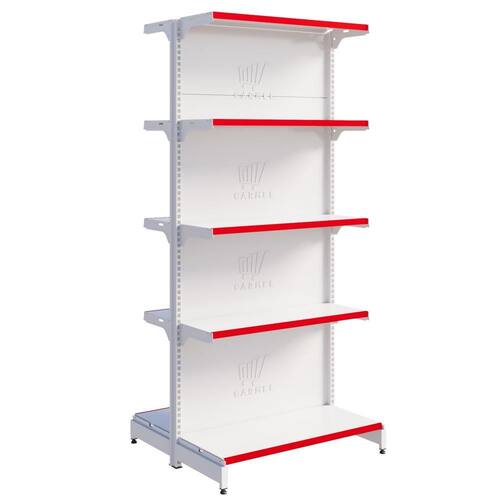 Gôndola Centro 1 Inicial 1,70m Bandeja Inclinável New Plus Carmel Imports - Branco Perfil Vermelho