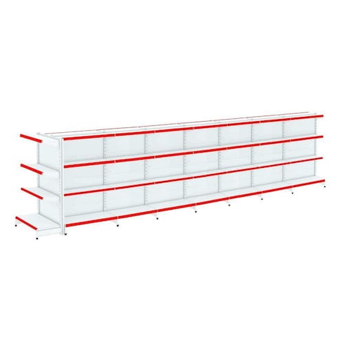 A Gôndola FIT 40 FARMA Centro é ideal para farmácia, supermercados, mercearias, lojas de utilidades, materiais de construção, agropecuárias e outros. Devido sua altura permite uma visão ampla central do comércio.