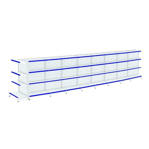 A Gôndola FIT 40 FARMA Centro é ideal para farmácia, supermercados, mercearias, lojas de utilidades, materiais de construção, agropecuárias e outros. Devido sua altura permite uma visão ampla central do comércio.
