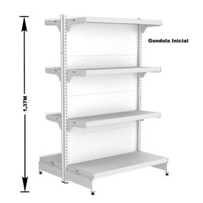 Para garantir uma configuração adequada, inicie a fileira com a Gôndola Inicial de 2 colunas, seguida pela Gôndola Continuação de 1 coluna, essencial para manter a continuidade da disposição e que não pode ser montada separadamente.