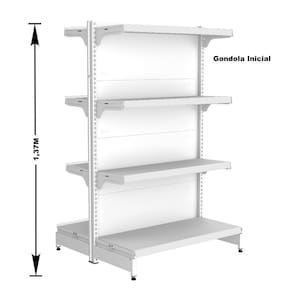 Para garantir uma configuração adequada, inicie a fileira com a Gôndola Inicial de 2 colunas, seguida pela Gôndola Continuação de 1 coluna, essencial para manter a continuidade da disposição e que não pode ser montada separadamente.