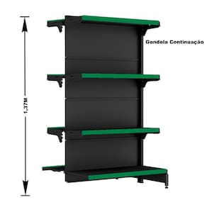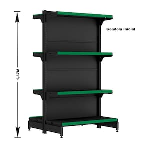 KIT GÔNDOLA CENTRO 137 FIT AMAPÁ 40/30 PRETO PARA VÃO DE ATÉ 3 METROS 24 BANDEJAS PORTA ETIQUETA VERDE