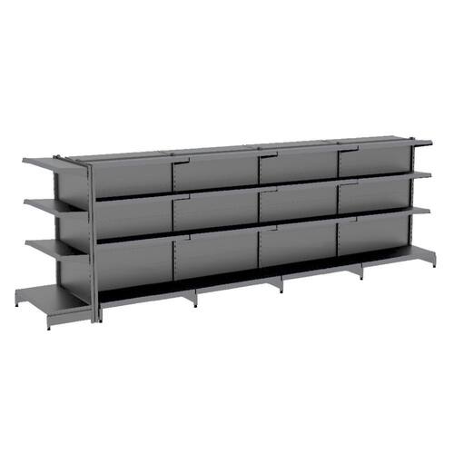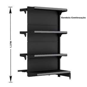 KIT GÔNDOLA CENTRO 137 FIT AMAPÁ 40/30 PRETO PARA VÃO DE ATÉ 4,50 METROS COM UMA PONTA 36 BANDEJAS PORTA ETIQUETA CINZA