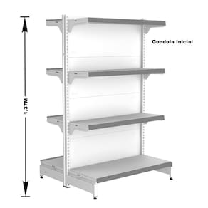 Para garantir uma configuração adequada, inicie a fileira com a Gôndola Inicial de 2 colunas, seguida pela Gôndola Continuação de 1 coluna, essencial para manter a continuidade da disposição e que não pode ser montada separadamente.