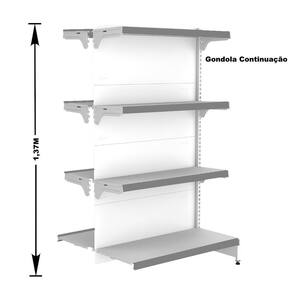 KIT GÔNDOLA CENTRO 137 FIT AMAPÁ 40/30 BRANCO PARA VÃO DE ATÉ 5,30 METROS COM UMA PONTA 44 BANDEJAS PORTA ETIQUETA CINZA