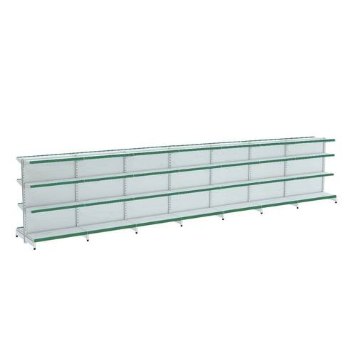 KIT GÔNDOLA CENTRO 137 FIT AMAPÁ 40/30 BRANCO PARA VÃO DE ATÉ 6,70 METROS 56 BANDEJAS PORTA ETIQUETA VERDE