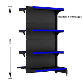 GÔNDOLA CENTRO 137 FIT AMAPÁ CONTINUAÇÃO 40/30 PRETO 8 BANDEJAS PORTA ETIQUETA AZUL