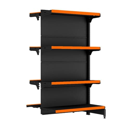 GÔNDOLA CENTRO 137 FIT AMAPÁ CONTINUAÇÃO 40/30 PRETO 8 BANDEJAS PORTA ETIQUETA LARANJA