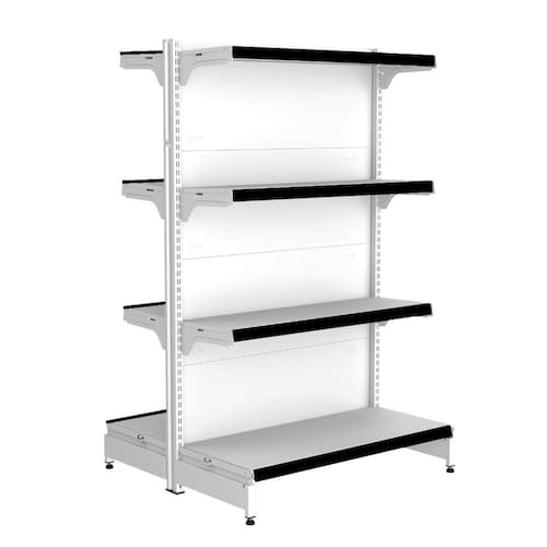 A fileira de Gôndolas deve ser iniciada com a Gôndola Inicial que possui 2 colunas. A Gôndola Continuação possui 1 coluna, utilizada para dar continuidade à fileira e não pode ser montada individualmente.