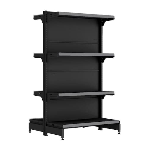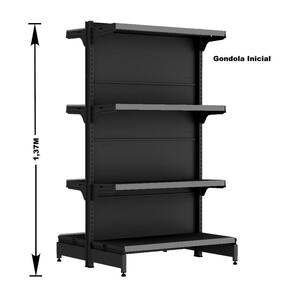 GÔNDOLA CENTRO 137 FIT AMAPÁ INICIAL 40/30 PRETO 8 BANDEJAS PORTA ETIQUETA CINZA