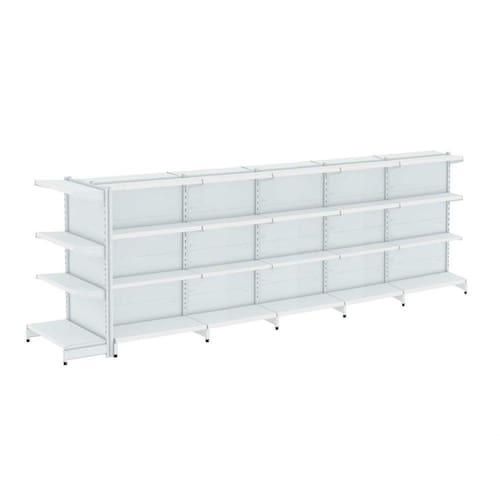 A Gôndola Premium Flex 40 Centro é ideal para farmácia, supermercados, mercearias, lojas de utilidades, materiais de construção, agropecuárias e outros. Devido sua altura permite uma visão ampla central do comércio.