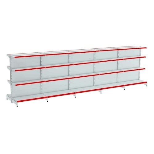 GONDOLA CENTRO 142 AMAPÁ FLEX KIT 5 METROS 40/30 BRANCO PORTA ETIQUETA VERMELHO