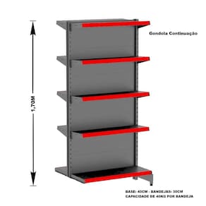 Prática e fácil de montar, com sistema de encaixe sem utilização de parafusos, possui bandejas reguláveis a cada 4,5 cm, pés com regulagem de altura, colunas dupladas e tratamento especial da superfície.