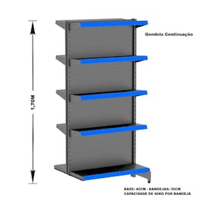 Prática e fácil de montar, com sistema de encaixe sem utilização de parafusos, possui bandejas reguláveis a cada 4,5 cm, pés com regulagem de altura, colunas dupladas e tratamento especial da superfície.