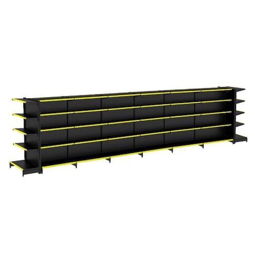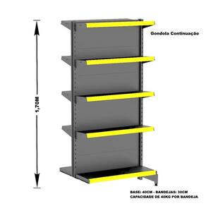 GONDOLA CENTRO 170 AMAPÁ FLEX KIT 6 METROS COM 2 PONTA 40/30 PRETO PORTA ETIQUETA AMARELO