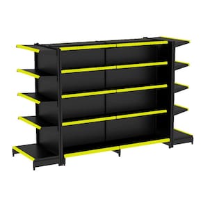 KIT GÔNDOLA CENTRO 170 FIT AMAPÁ 40/30 PRETO PARA VÃO DE ATÉ 2,80 METROS COM DUAS PONTAS 30 BANDEJAS PORTA ETIQUETA AMARELO