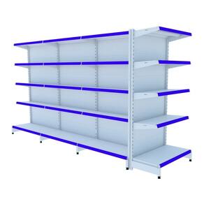 KIT GÔNDOLA CENTRO 170 FIT AMAPÁ 40/30 BRANCO PARA VÃO DE ATÉ 3,50 METROS COM UMA PONTA 35 BANDEJAS PORTA ETIQUETA AZUL