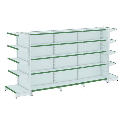 KIT GÔNDOLA CENTRO 170 FIT AMAPÁ 40/30 BRANCO PARA VÃO DE ATÉ 3,80 METROS COM DUAS PONTAS 40 BANDEJAS PORTA ETIQUETA VERDE