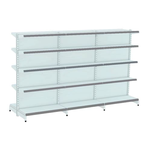 Para garantir uma configuração adequada, inicie a fileira com a Gôndola Inicial de 2 colunas, seguida pela Gôndola Continuação de 1 coluna, essencial para manter a continuidade da disposição e que não pode ser montada separadamente.