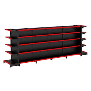 KIT GÔNDOLA CENTRO 170 FIT AMAPÁ 40/30 PRETO PARA VÃO DE ATÉ 4,70 METROS COM DUAS PONTAS 50 BANDEJAS PORTA ETIQUETA VERMELHO