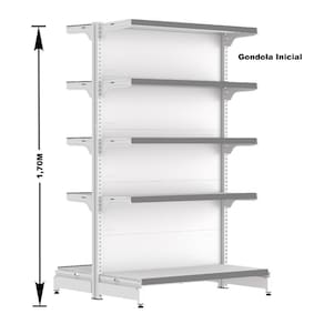 Para garantir uma configuração adequada, inicie a fileira com a Gôndola Inicial de 2 colunas, seguida pela Gôndola Continuação de 1 coluna, essencial para manter a continuidade da disposição e que não pode ser montada separadamente.