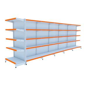 KIT GÔNDOLA CENTRO 170 FIT AMAPÁ 40/30 BRANCO PARA VÃO DE ATÉ 5,3 METROS COM UMA PONTA 55 BANDEJAS PORTA ETIQUETA LARANJA