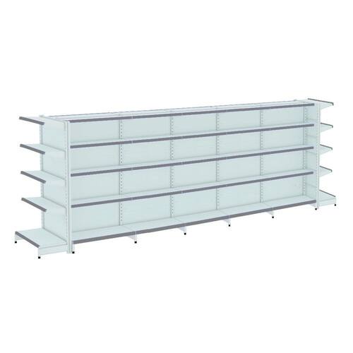 KIT GÔNDOLA CENTRO 170 FIT AMAPÁ 40/30 BRANCO PARA VÃO DE ATÉ 5,70 METROS COM DUAS PONTAS 60 BANDEJAS PORTA ETIQUETA CINZA