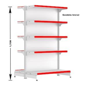 KIT GÔNDOLA CENTRO 170 FIT AMAPÁ 40/30 BRANCO PARA VÃO DE ATÉ 4,9 METROS 50 BANDEJAS PORTA ETIQUETA VERMELHO