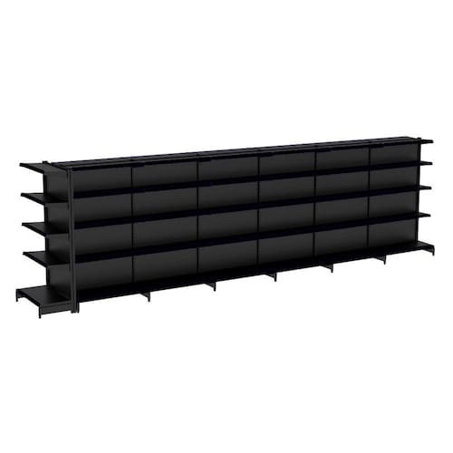 KIT GÔNDOLA CENTRO 170 FIT AMAPÁ 40/30 PRETO PARA VÃO DE ATÉ 6,3 METROS COM UMA PONTA 65 BANDEJAS PORTA ETIQUETA PRETO