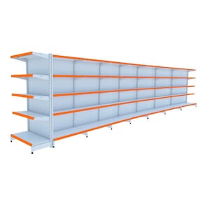 KIT GÔNDOLA CENTRO 170 FIT AMAPÁ 40/30 BRANCO PARA VÃO DE ATÉ 7,3 METROS COM UMA PONTA 75 BANDEJAS PORTA ETIQUETA LARANJA