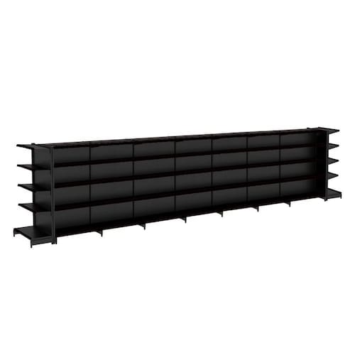 KIT GÔNDOLA CENTRO 170 FIT AMAPÁ 40/30 PRETO PARA VÃO DE ATÉ 7,70 METROS COM DUAS PONTAS 80 BANDEJAS PORTA ETIQUETA PRETO