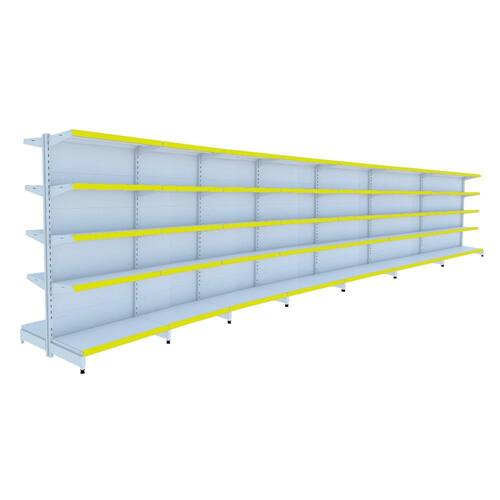 KIT GÔNDOLA CENTRO 170 FIT AMAPÁ 40/30 BRANCO PARA VÃO DE ATÉ 6,7 METROS 70 BANDEJAS PORTA ETIQUETA AMARELO