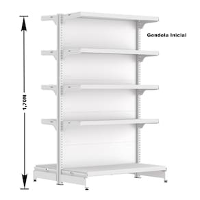 Para garantir uma configuração adequada, inicie a fileira com a Gôndola Inicial de 2 colunas, seguida pela Gôndola Continuação de 1 coluna, essencial para manter a continuidade da disposição e que não pode ser montada separadamente.
