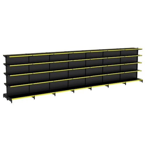 KIT GÔNDOLA CENTRO 170 FIT AMAPÁ 40/30 PRETO PARA VÃO DE ATÉ 6,7 METROS 70 BANDEJAS PORTA ETIQUETA AMARELO