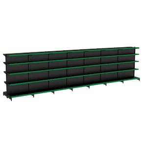 KIT GÔNDOLA CENTRO 170 FIT AMAPÁ 40/30 PRETO PARA VÃO DE ATÉ 6,7 METROS 70 BANDEJAS PORTA ETIQUETA VERDE