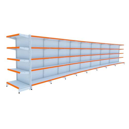 KIT GÔNDOLA CENTRO 170 FIT AMAPÁ 40/30 BRANCO PARA VÃO DE ATÉ 8,1 METROS COM UMA PONTA 85 BANDEJAS PORTA ETIQUETA LARANJA