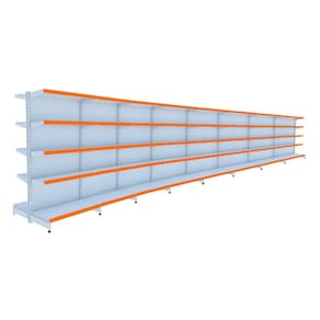 KIT GÔNDOLA CENTRO 170 FIT AMAPÁ 40/30 BRANCO PARA VÃO DE ATÉ 7,7 METROS 80 BANDEJAS PORTA ETIQUETA LARANJA