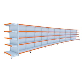 KIT GÔNDOLA CENTRO 170 FIT AMAPÁ 40/30 BRANCO PARA VÃO DE ATÉ 9,1 METROS COM UMA PONTA 95 BANDEJAS PORTA ETIQUETA LARANJA