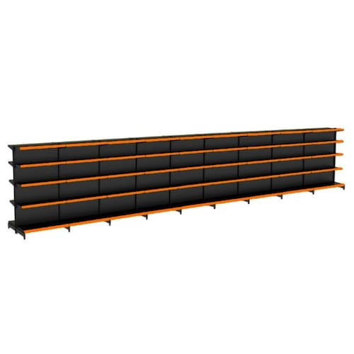 KIT GÔNDOLA CENTRO 170 FIT AMAPÁ 40/30 PRETO PARA VÃO DE ATÉ 8,7 METROS 90 BANDEJAS PORTA ETIQUETA LARANJA
