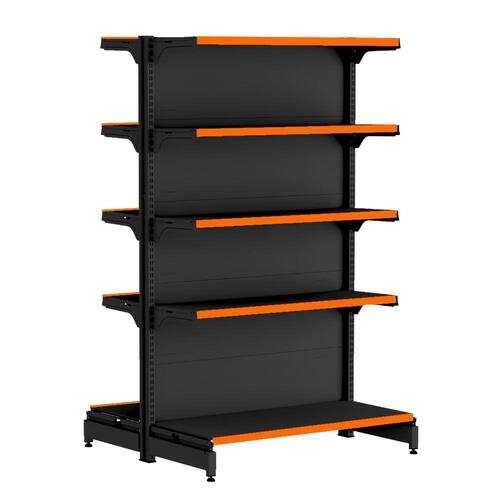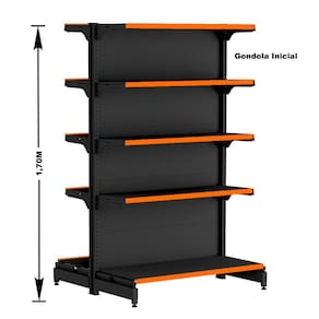 GÔNDOLA CENTRO 170 FIT AMAPÁ INICIAL 40/30 PRETO 10 BANDEJAS PORTA ETIQUETA LARANJA